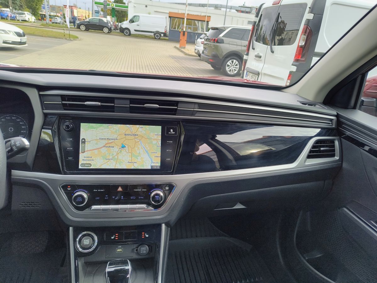Bogata wersja wyposażenia: cyfrowe zegary, multifunkcyjna skórzana kierownica, tempomat adaptacyjny ACC, felgi aluminiowe, nawigacja, bluetooth, podgrzewane fotele przednie, dwustrefowa automatyczna klimatyzacja, kamera cofania, czujniki parkowania, światła do jazdy dziennej ledowe, Android Auto i Apple Carplay, czujnik deszczu, czujnik zmierzchu, komputer pokładowy, HDC - system kontroli zjazdu ze wzniesienia HSA - asystent wjazdu na wzniesienia TSR - system rozpoznawania znaków drogowych AEBS - system autonomicznego hamowania LDWS/LKAS - asystent pasa ruchu SDA - alert o niebezpiecznej odległości od poprzedzającego pojazdu HBA - automatyczne przełączanie świateł mijania/drogowe TPMS - system monitorowania ciśnienia powietrza w oponach, ABS, ESP, TC, 7xAirbag itp.
